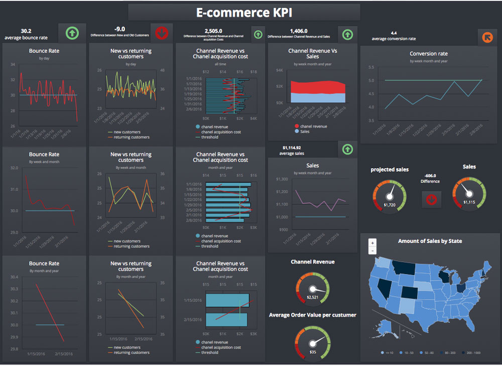 Our interactive eCommerce KPI dashboards allow you to proactively measure your sales productive, gain insights into revenue patterns and help you better understand ROI in minutes. Don’t wait until the end of the month, quarter or year to figure out whether marketing campaigns or initiatives worked. Proactively tracks your efforts to see what is working so you can redirect your valuable resources where it matters to produce maximum returns. Our solution enables you to connect with your sales performance and see results at the speed of light.